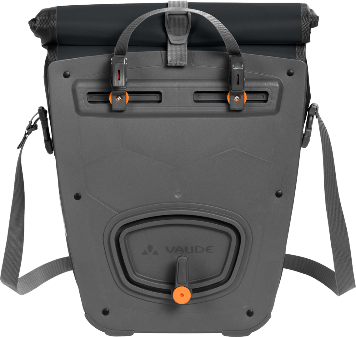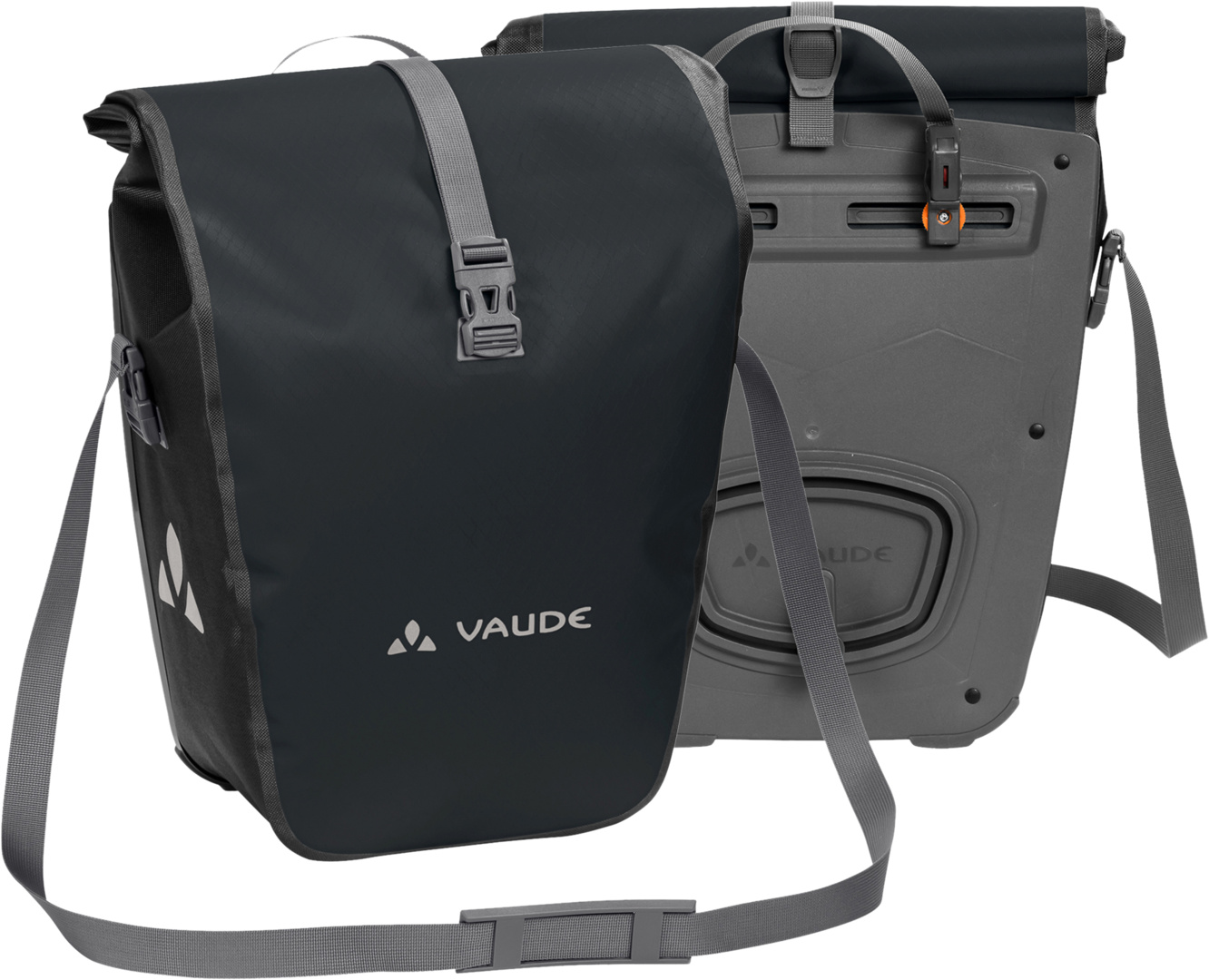 Auf in die grosse, weite Welt! Die zwei wasserdichten Hinterradtaschen werden aus robustem, PVC-freiem Planenmaterial klimaneutral am deutschen VAUDE-Standort in der Nähe des Bodensees hergestellt und würden gerne auf grosse Reisen gehen. Sie lassen sich durch den Wickelverschluss auf individuelle Grössen bringen und absolut dicht verschliessen. Für Übersichtlichkeit sorgt eine einfache Innentasche. Die Radtaschen werden mit dem QMR 2.0-System und stabiler Rückenplatte rechts und links am hinteren Gepäckträger befestigt, sind über einfach bedienbare Handrädchen justierbar und lassen sich schnell und einfach abnehmen. Mit einem Fahrradschloss kann das Set direkt am QMR-Haken verriegelt werden. Mit reflektierenden Elementen. Lieferumfang: zwei Taschen (Paar). Das Gesamtvolumen beider Taschen beträgt 48 Liter. Kann durch diese praktischen Zubehör-Taschen ergänzt werden: Toolbag Back, Sortyour Back, Addita Bag.