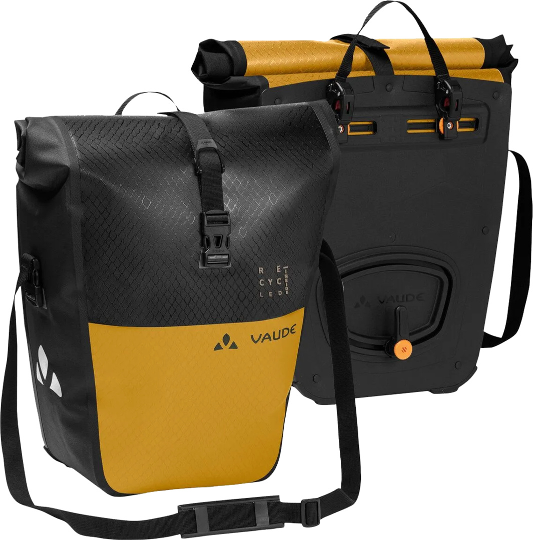 1 Paar Fahrradtaschen für das Hinterrad #wasserdicht verschweisst; urbane Farbgebung #mit QMR 2.0 Befestigungssystem für Gepäckträger mit 8 bis 16 mm Durchmesser #aus recyceltem Material in Deutschland hergestellt