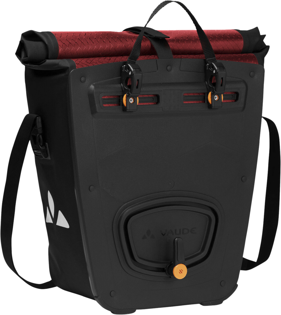 geräumiges Hauptfach, Innentasche, wasserdichter Wickelverschluss, Rollverschluss nach oben und unten schliessbar, abnehmbarer Schultergurt, Schulterträger auch als Spanngurt nutzbar, Reflexlogo , leicht einstellbares QMR 2.0 Befestigungssystem, QMR abschliessbar, Befestigungssystem QMR 2.0 passt auf runde Gepäckträgerrohre mit Durchmessern von 8-16 mm