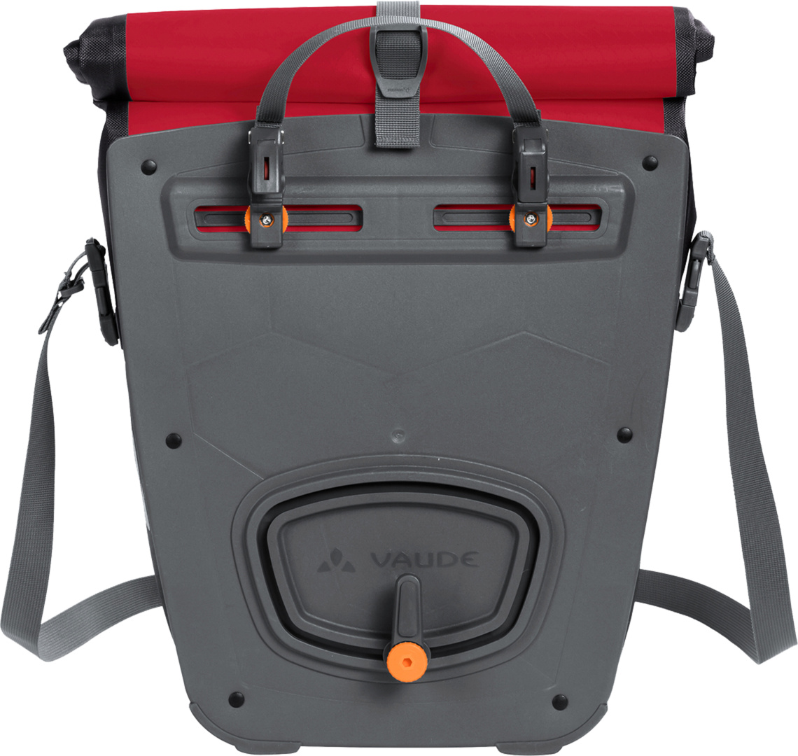 Weltreisefeeling für jeden Tag! Die wasserdichte Hinterradtasche wird aus robustem, PVC-freiem Planenmaterial klimaneutral am deutschen VAUDE-Standort in der Nähe des Bodensees hergestellt und begleitet Dich zuverlässig durch Deinen Alltag mit dem Rad. Sie lässt sich durch den Wickelverschluss auf individuelle Grössen bringen und absolut dicht verschliessen. Für Übersichtlichkeit sorgt eine einfache Innentasche. Die Tasche wird mit dem QMR 2.0-System und stabiler Rückenplatte rechts oder links am hinteren Gepäckträger befestigt, ist über einfach bedienbare Handrädchen justierbar und lässt sich schnell und einfach abnehmen. Mit einem Fahrradschloss kann sie direkt am QMR-Haken verriegelt werden. Mit reflektierenden Elementen. Lieferumfang: 1 Tasche, die entweder links oder rechts am Gepäckträger befestigt werden kann. Kann durch diese praktische Zubehör-Taschen ergänzt werden: Toolbag Back, Sortyour Back, Addita Bag.