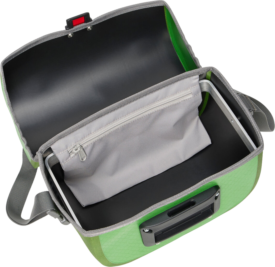 Die Aqua Box Fahrrad Lenkertasche ist ein unverzichtbarer Begleiter für jede Radtour, da sie wichtige Utensilien stets griffbereit und im Blickfeld hält. Diese äusserst widerstandsfähige Fahrrad Lenkertasche für Radreisen mit einem Volumen von 4 Litern wird am deutschen VAUDE Standort nahe des Bodensees mittels Hochfrequenztechnik wasserdicht verschweisst. Dank der Einhandbedienung lässt sich die Tasche mühelos öffnen, während das geräumige Hauptfach zusätzlich ein Reissverschluss-Steckfach bietet. Ein abnehmbarer Schultergurt sorgt für komfortables Tragen. Auf dem Deckel ermöglicht eine Gummizughalterung die Befestigung transparenter Kartentaschen zur Navigation (Beguided small, Beguided big ? nicht im Lieferumfang enthalten) oder das schnelle Verstauen von Handschuhen oder einer Windjacke. Die Lenkertasche Aqua Box ist KLICKfix ready ausgestattet, was bedeutet: Die Adapter-Halteplatte ist montiert und der KLICKfix-Adapter kann exakt auf den Lenker (Standard oder E-Bike) passend gewählt werden (nicht im Lieferumfang enthalten).