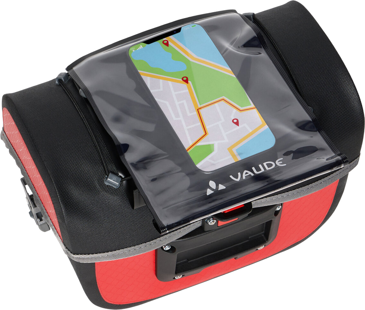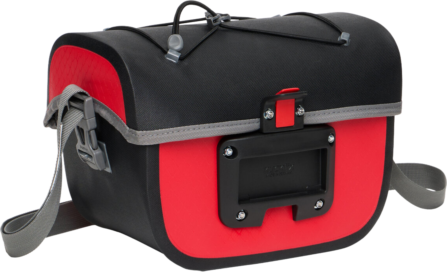Die Aqua Box Fahrrad Lenkertasche ist ein unverzichtbarer Begleiter für jede Radtour, da sie wichtige Utensilien stets griffbereit und im Blickfeld hält. Diese äusserst widerstandsfähige Fahrrad Lenkertasche für Radreisen mit einem Volumen von 4 Litern wird am deutschen VAUDE Standort nahe des Bodensees mittels Hochfrequenztechnik wasserdicht verschweisst. Dank der Einhandbedienung lässt sich die Tasche mühelos öffnen, während das geräumige Hauptfach zusätzlich ein Reissverschluss-Steckfach bietet. Ein abnehmbarer Schultergurt sorgt für komfortables Tragen. Auf dem Deckel ermöglicht eine Gummizughalterung die Befestigung transparenter Kartentaschen zur Navigation (Beguided small, Beguided big ? nicht im Lieferumfang enthalten) oder das schnelle Verstauen von Handschuhen oder einer Windjacke. Die Lenkertasche Aqua Box ist KLICKfix ready ausgestattet, was bedeutet: Die Adapter-Halteplatte ist montiert und der KLICKfix-Adapter kann exakt auf den Lenker (Standard oder E-Bike) passend gewählt werden (nicht im Lieferumfang enthalten).