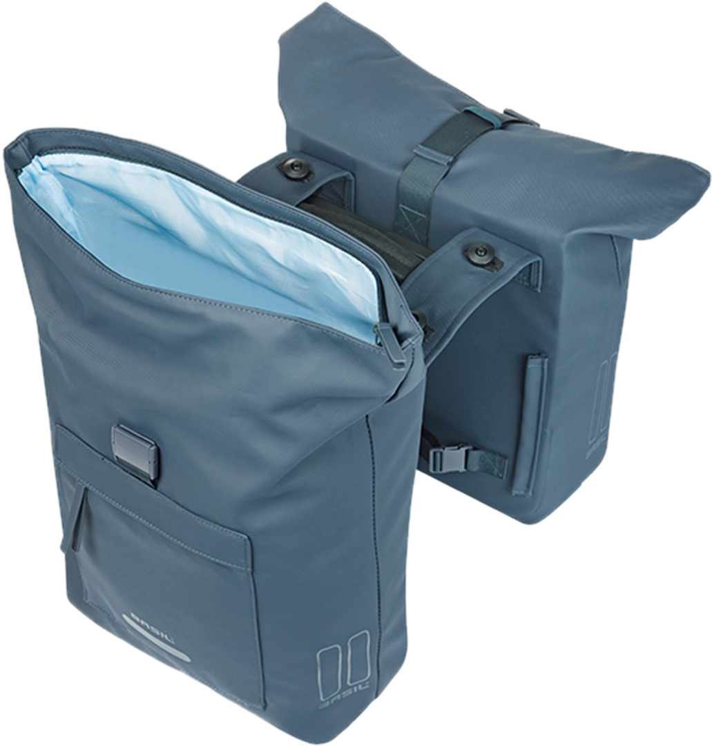 Von zu Hause zur Arbeit, mit StilDie Basil Brooklyn Fahrrad Doppeltasche ist für den Weg zur Arbeit und in die Stadt konzipiert und für alle gemacht, die täglich unterwegs sind und viele Dinge mitnehmen möchten, aber nicht auf Stil verzichten wollen. Vom Laptop und den Unterlagen bis hin zu den Einkäufen oder der Sportkleidung ? diese Doppeltasche bietet viel Platz und Übersichtlichkeit. Die marineblaue Ausführung sieht elegant und professionell aus und passt zu jedem modernen Fahrrad.