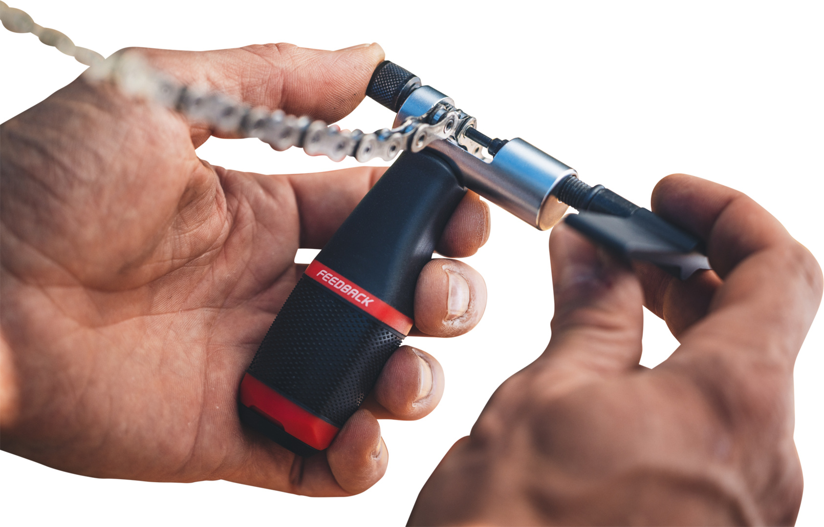 - Breites, stark gehebeltes Pin-Press-Paddel, mit dem sich auch die hartnäckigsten Kettenstifte schnell lösen lassen