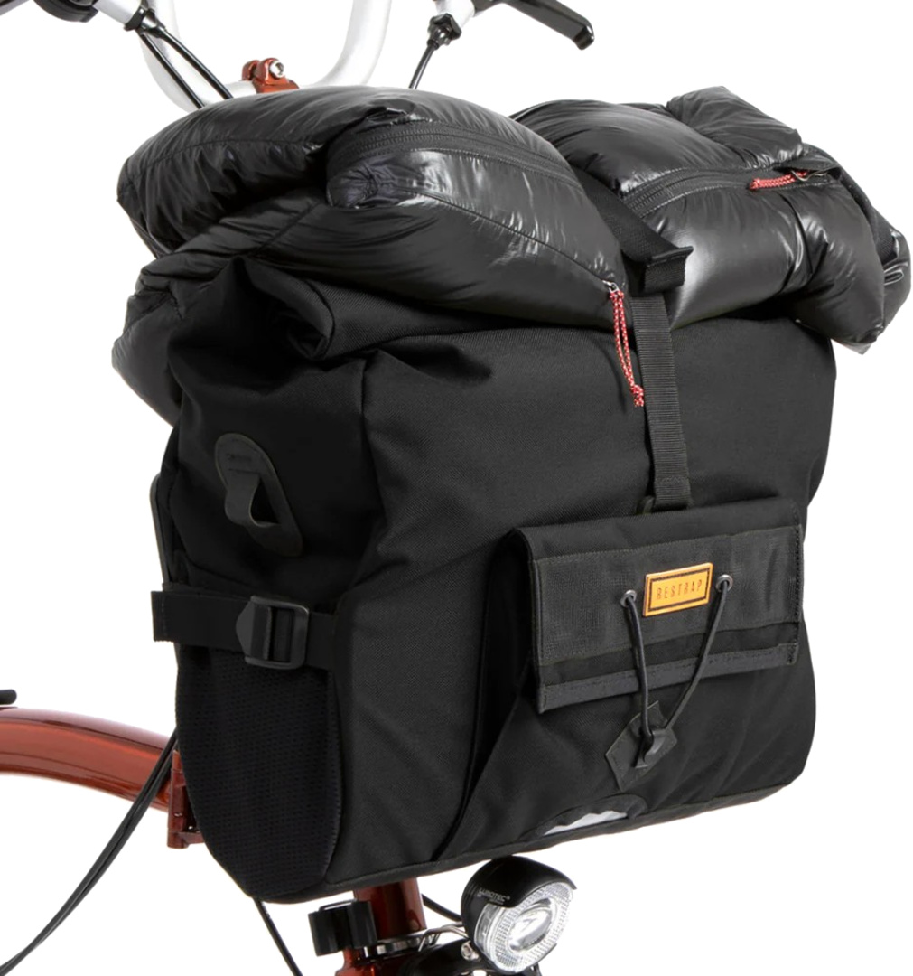 - Seitentaschen mit Kompressionsriemen für Zubehör (z.?B. Flaschen, Schlösser)