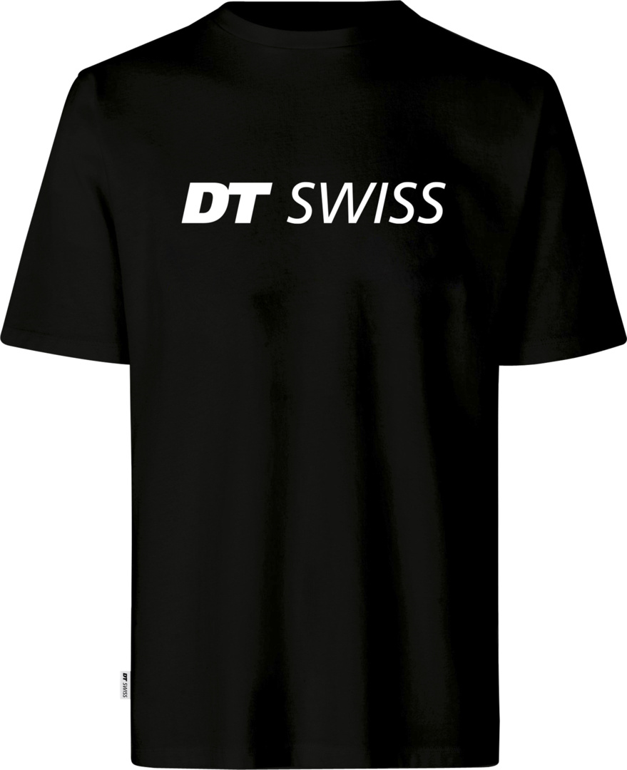 Klassischers T-Shirt aus 100% Baumwolle. Grosses weisses DT Swiss Logo auf der Front.