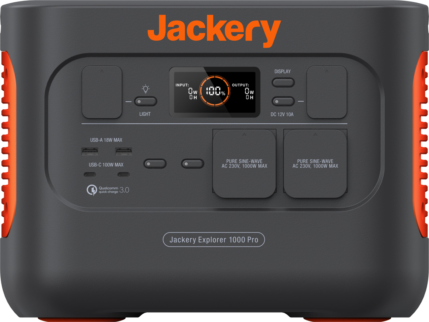Die Jackery Explorer 1000 Pro tragbare Powerstation versorgt mehrere Geräte gleichzeitig! Mit einer Akkukapazität von 1002 Wh lädt die tragbare 1000W-Powerstation deine Geräte beim Camping und bei Stromausfällen auf. Zu den Eigenschaften gehören ein branchenführendes BMS, reine Sinuswellentechnologie, 94V-0 Brandschutzmaterial, ein klappbarer Griff und ein Gewicht von nur 11,5?kg.