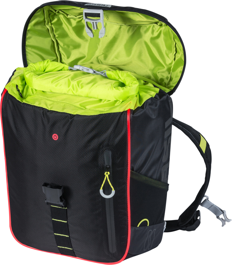 Der Basil Miles Daypack ist ein wasserdichter, schwarzer Fahrradrucksack, der bei Frauen und Männern gleichermaßen beliebt ist. Der praktische Rucksack ist mit 17 Litern Inhalt ausgesprochen geräumig.