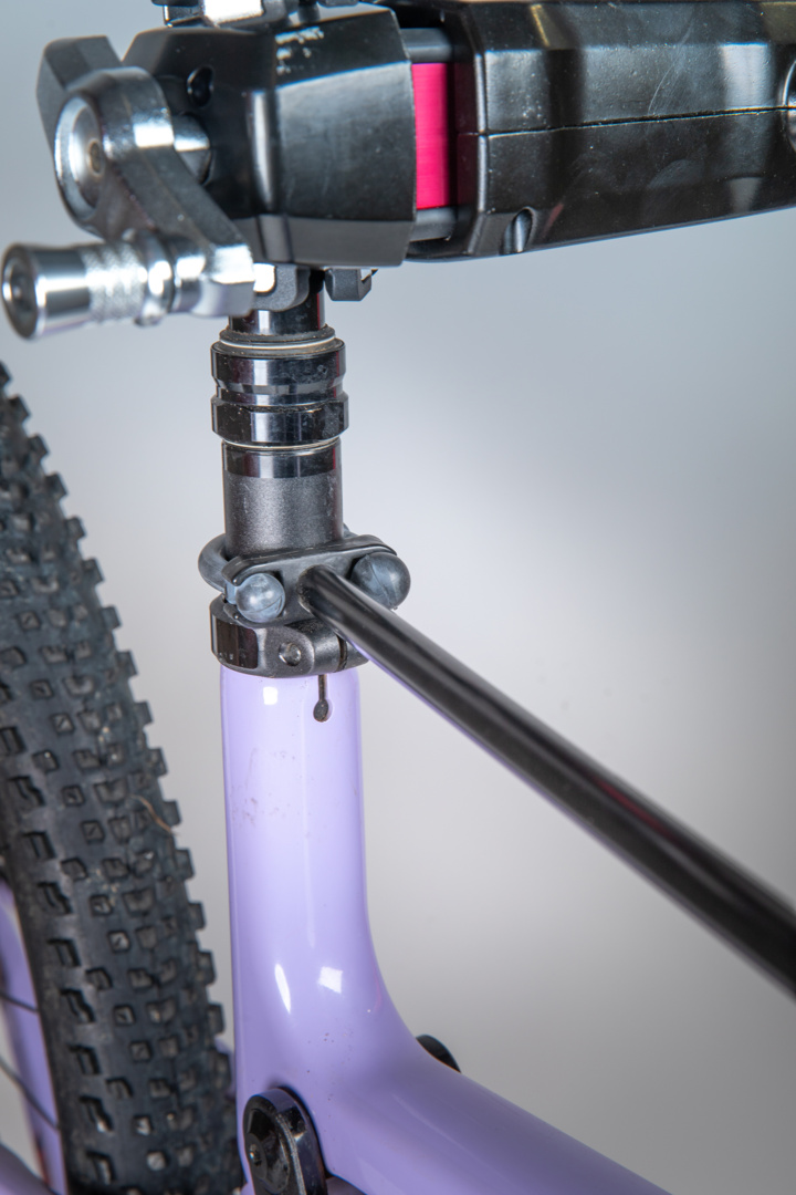Der Lenkerhalter von Feedback Sports erleichtert die Reparatur im Bereich des Vorderrads, da mit seiner Hilfe ein ungewolltes Verdrehen des Lenkers verhindert wird.