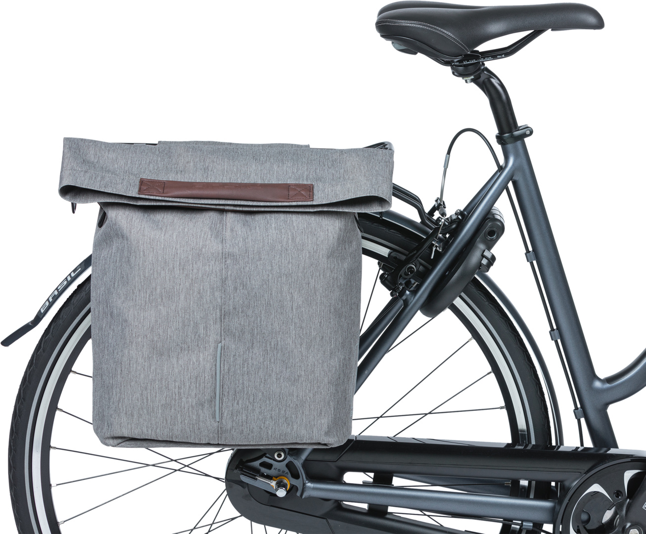 Der Basil City Shopper passt absolut zum schnellen Tempo der Stadt: Arbeit, Freunde, auf den Markt gehen oder nach einer Yogastunde einfach mal ganz du selbst sein. Der schwarze Shopper ist nicht zu schwer und nicht zu gross, aber hat doch viel Platz (mit grossartigen 14 ? 16 Litern Inhalt) und ist stabil genug, um so einiges darin mitzunehmen.Der magnetische, wasserabwehrende Faltverschluss verhindert, dass es in die Tasche reinregnet. Die Tasche kannst du mit dem Hook-On-System sekundenschnell an deinem Gepäckträger befestigen oder am abnehmbaren Schulterriemen lässig über die Schulter hängen. An den Griffen aus veganem Leder lässt sich die graumelierte Tasche angenehm tragen. Auch die Sicherheit kommt bei dieser Tasche nicht zu kurz. An allen Seiten sind Reflektoren angebracht und du hast die Option zur Befestigung einer LED-Beleuchtung. Wertvolle Dinge sind im Innenfach mit Reissverschluss sicher verwahrt.