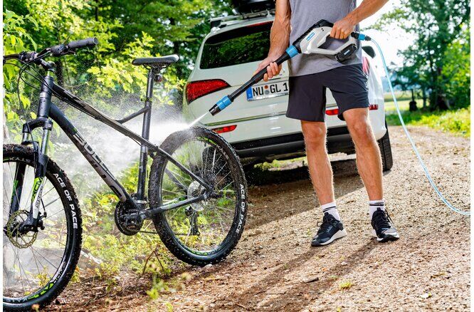 Hochleistungs-Sprühsystem mit BOSCH Akku 4-in-1 Multifunktionsdüse Max. Pumpleistung 25 bar Werkzeugloser Wechsel der Module Gewicht 1,9 kg