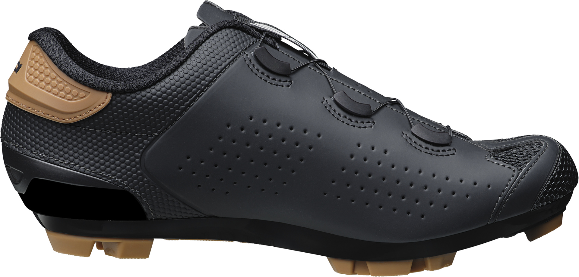Die Sidi-Technologie, die für das Mountainbike verwendet wird, wird auf die Schotter-Disziplin mit ihren technischsten Aspekten in einem leistungsstarken, steifen Schuh mit einem für hohe Niveaus entwickelten Verschluss angewendet.