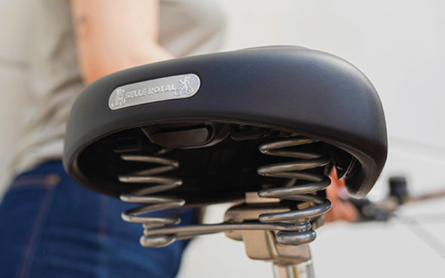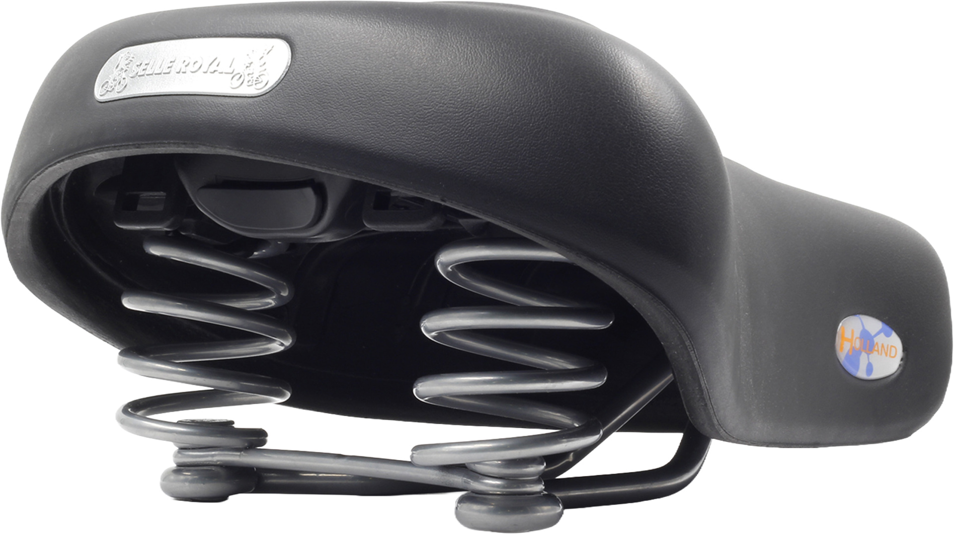Retro-Sattel im klassischen Hollandrad-Stil, mit Federungssystem und Royalgel?-Polsterung für stilvolles und komfortables Fahren in der Stadt.