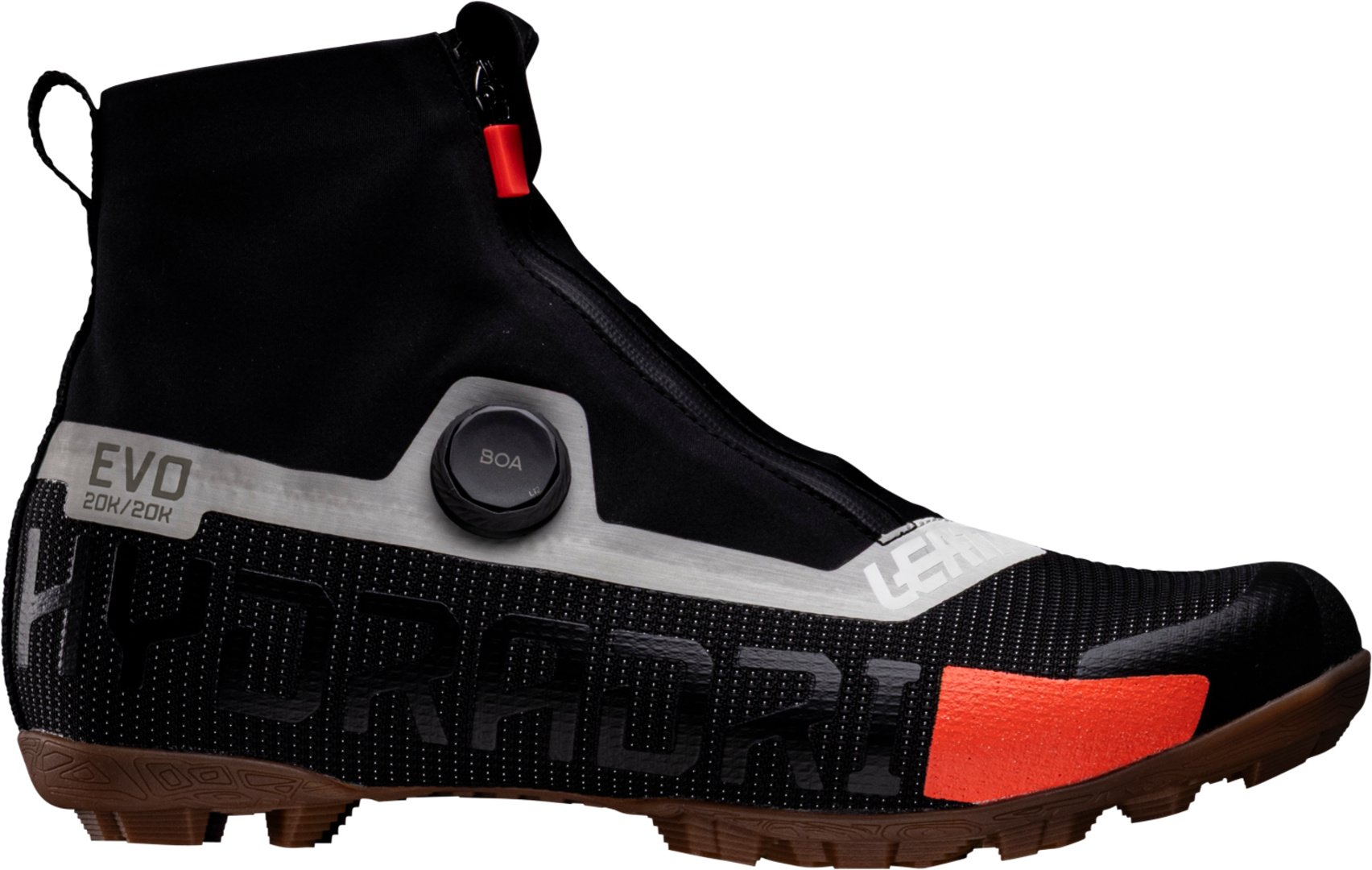 Der HydraDri ProClip 8.0 BOA wurde entwickelt, um Wasser, Schlamm und Schmutz draußen zu halten ? egal, wie gnarly die Bedingungen sind. Seine vollständig wasserdichte HydraDri EVO-Membran und die versiegelte Bootie-Konstruktion werden mit einer wasser- und schmutzabweisenden Gamasche sowie einem Reißverschluss kombiniert, um eine zuverlässige Barriere gegen die Elemente zu schaffen. Innerhalb der Gamasche ist der Innenschuh als Low-Top ausgeführt ? für effizientes Pedalieren. Das BOA® Li2-Drehrad sorgt für eine präzise, mikrojustierbare Passform, während der Control Flex Shank aus 20% Carbon/80% Nylon die Kraftübertragung maximiert, ohne das Pedalgefühl zu beeinträchtigen. Eine aggressive RideGrip-Außensohle hält die Traktion in rutschigem Gelände, und TPU-Verstärkungen schützen vor Stößen und Abrieb. Der HydraDri ProClip 8.0 BOA ist darauf ausgelegt, bei kalten, nassen und schlammigen Fahrten zu performen.