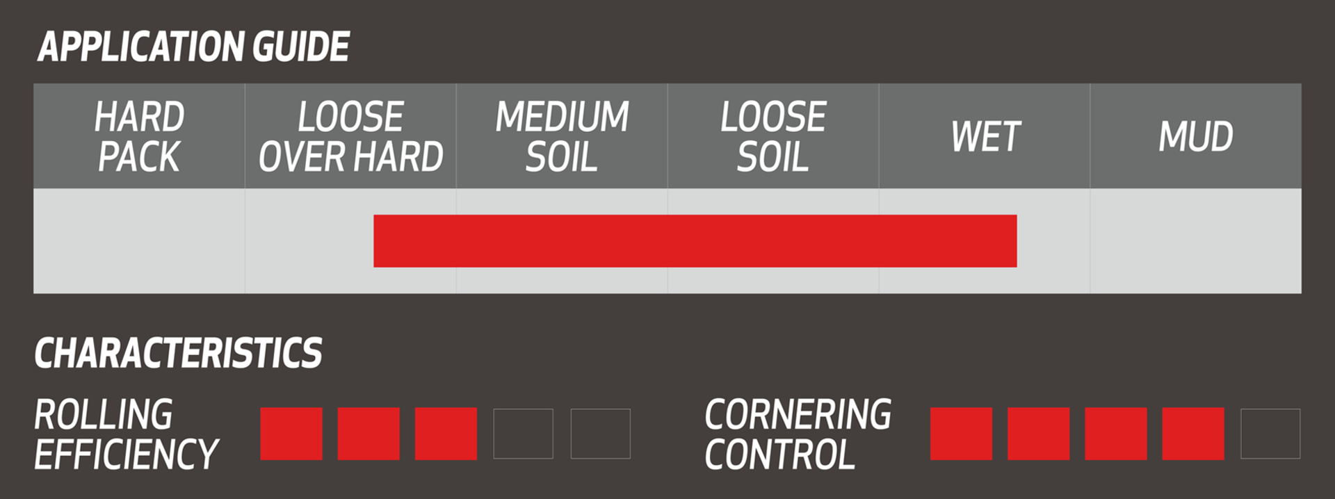 Die eng angeordneten Mittelstollen des Ibex vereinen geringen Rollwiderstand mit maximaler Bremsleistung, während die aggressiven Seitenstollen viel Grip in offenen Kurven bieten.