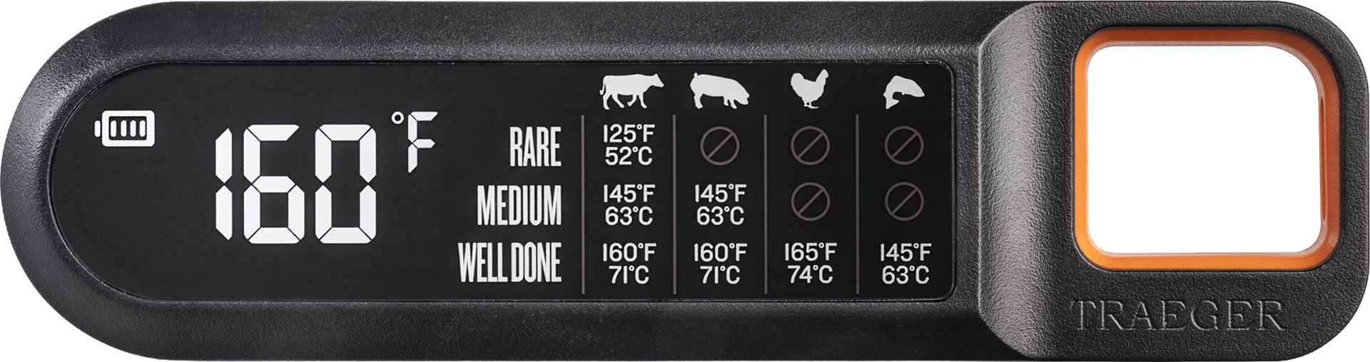 Erhalten Sie präzise Messwerte vor Ort mit dem Traeger Instant Read Thermometer. Das große LCD-Display bietet ultraschnelle Temperaturmessungen zusammen mit einer integrierten Lebensmitteltabelle, um sicherzustellen, dass Ihr Essen jedes Mal sicher und nach Ihrem gewünschten Gargrad zubereitet wird.