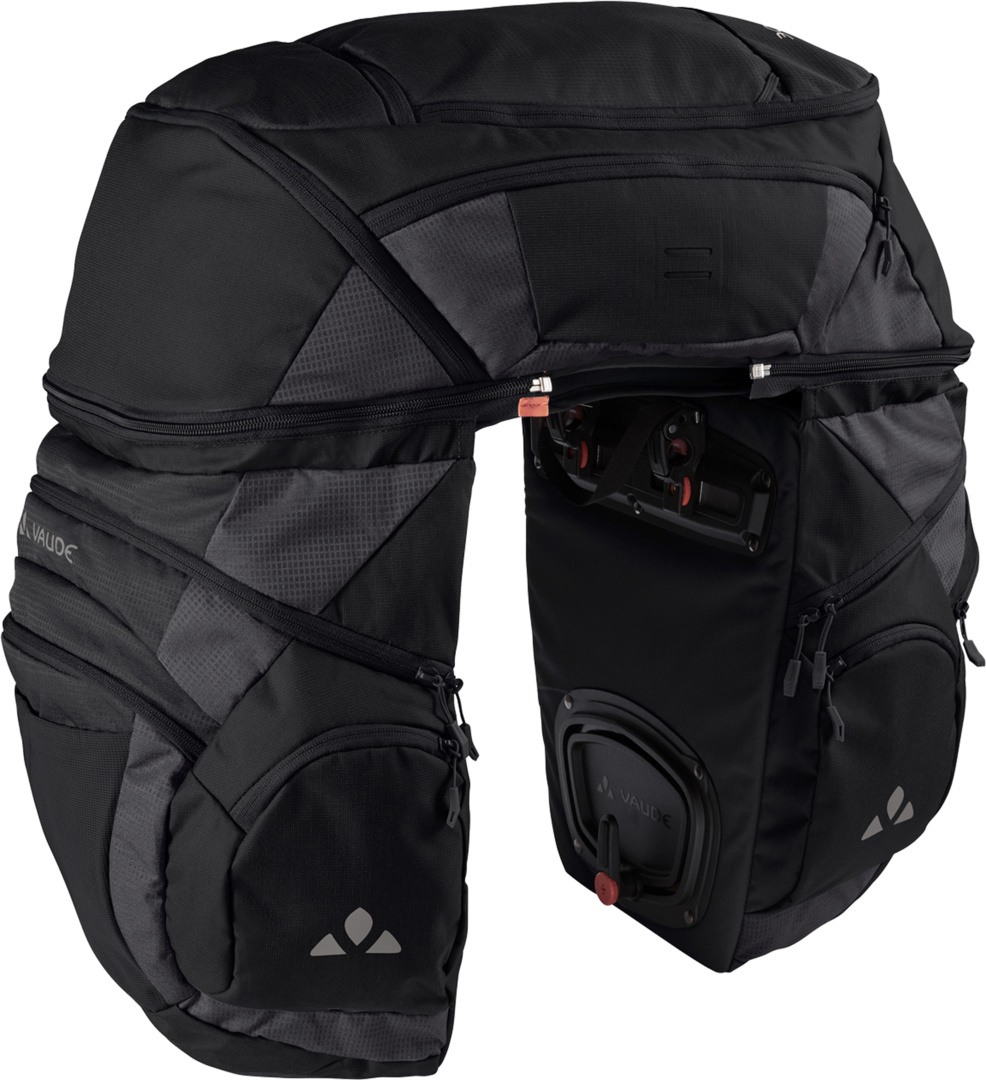 Dreifachtasche für Radreisende. Umfangreiche Ausstattung, Top Case als Rucksack nutzbar. Klimaneutral kompensiert; umweltfreundliche Materialien.