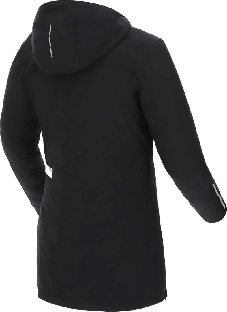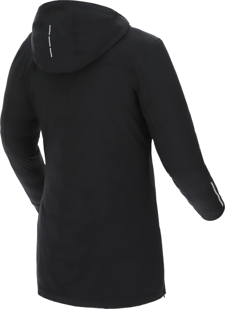 - Reflektierende Drucke an der Kaputze und den Ärmelbündchen