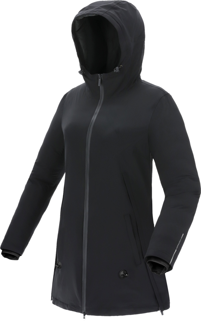 - unsichtbare Maxi?Seitenfalten, die mit Reissverschluss geöffnet werden können, um die Jacke in einen Regenschutz zu verwandeln