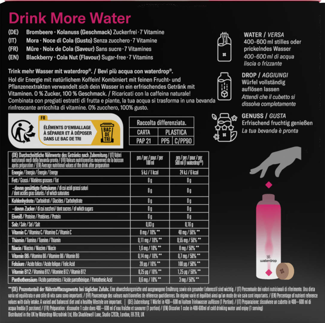 | Zutatenverzeichnis | Zutaten: Säuerungsmittel: Citronensäure; Säureregulatoren: Natriumcarbonate, Kaliumcarbonate; natürl |