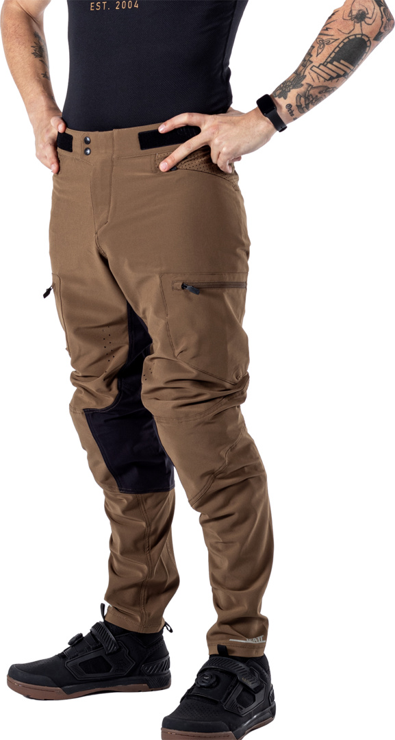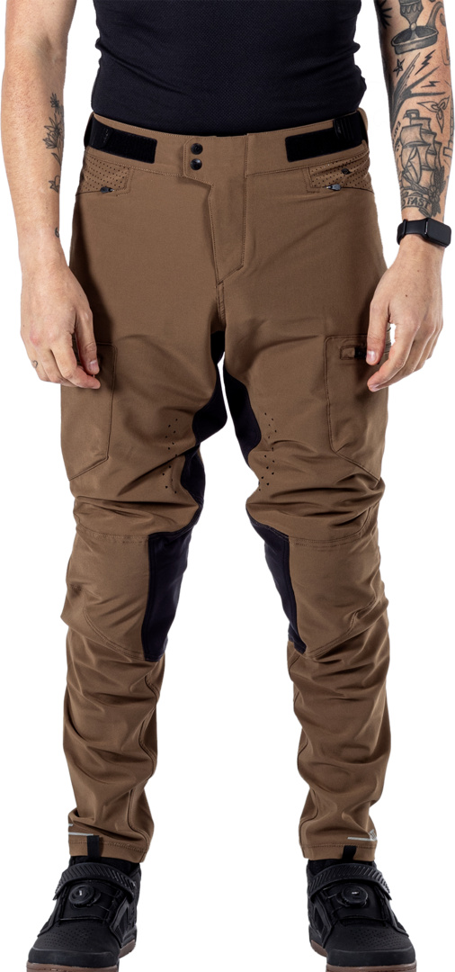 In den Cargotaschen auf beiden Seiten können Sie kleine Gegenstände verstauen, die leicht zugänglich sein müssen. Die Knie sind für die Sicherheit beim Fahren für Knieschützer vorgeformt.