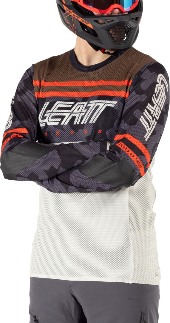 Das rennspezifische Stretchmaterial mit Slim-Fit-Schnitt kann mit oder ohne Körperschutz getragen werden und ist natürlich für Nackenstützen geeignet! Die Ellbogen des Trikots sind mit Brush Guards verstärkt, einer federleichten, flexiblen Folie, die die Kratz- und Abriebfestigkeit erhöht.