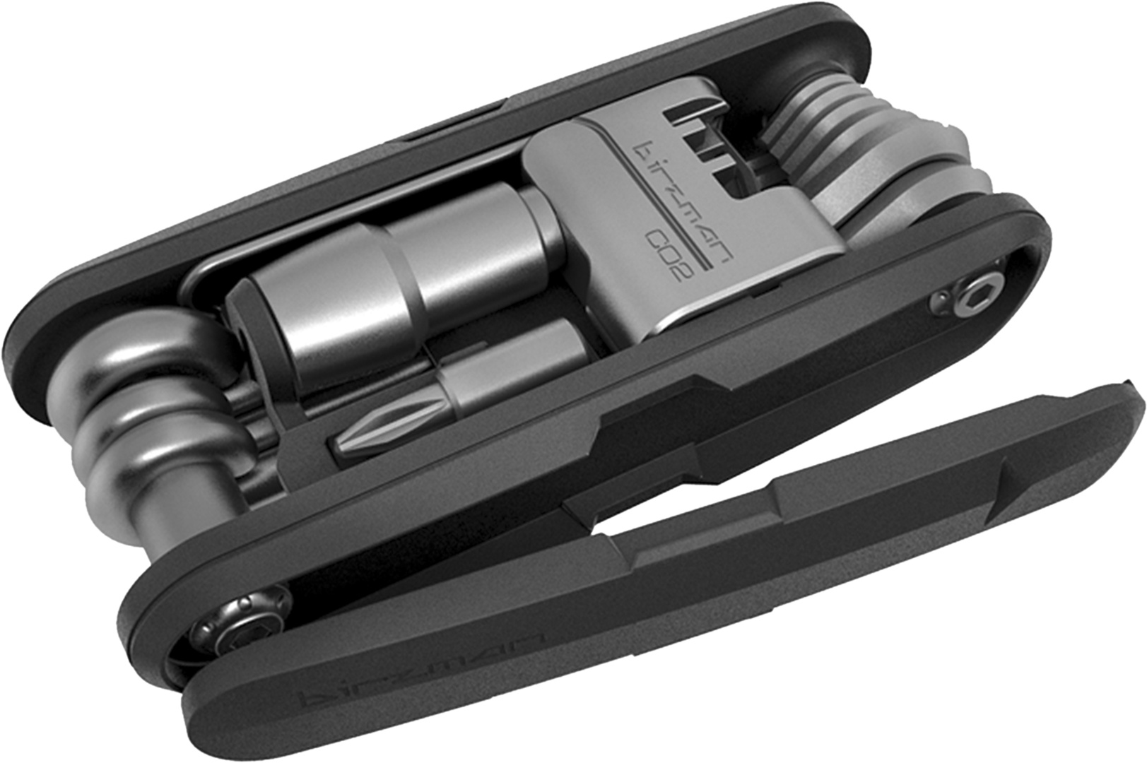 Das Diversity ist neben einem Multitool noch ein CO2-Kopf. Die Seitenplatten beinhalten zudem zwei Pneuhebel und ein Kettenfixierer. Die Werkzeuge reichen von 2, 2.5, 3, 4, 5, 6 und 8mm Inbus, T25, Kreuz- und Flach-Schraubenzieher. Zusätzlich sind die integrierten Pneuhebel, ein Kettennieter für 8/9/10 und 11fach Ketten, Kettenfixierer und der CO2-Kopf.