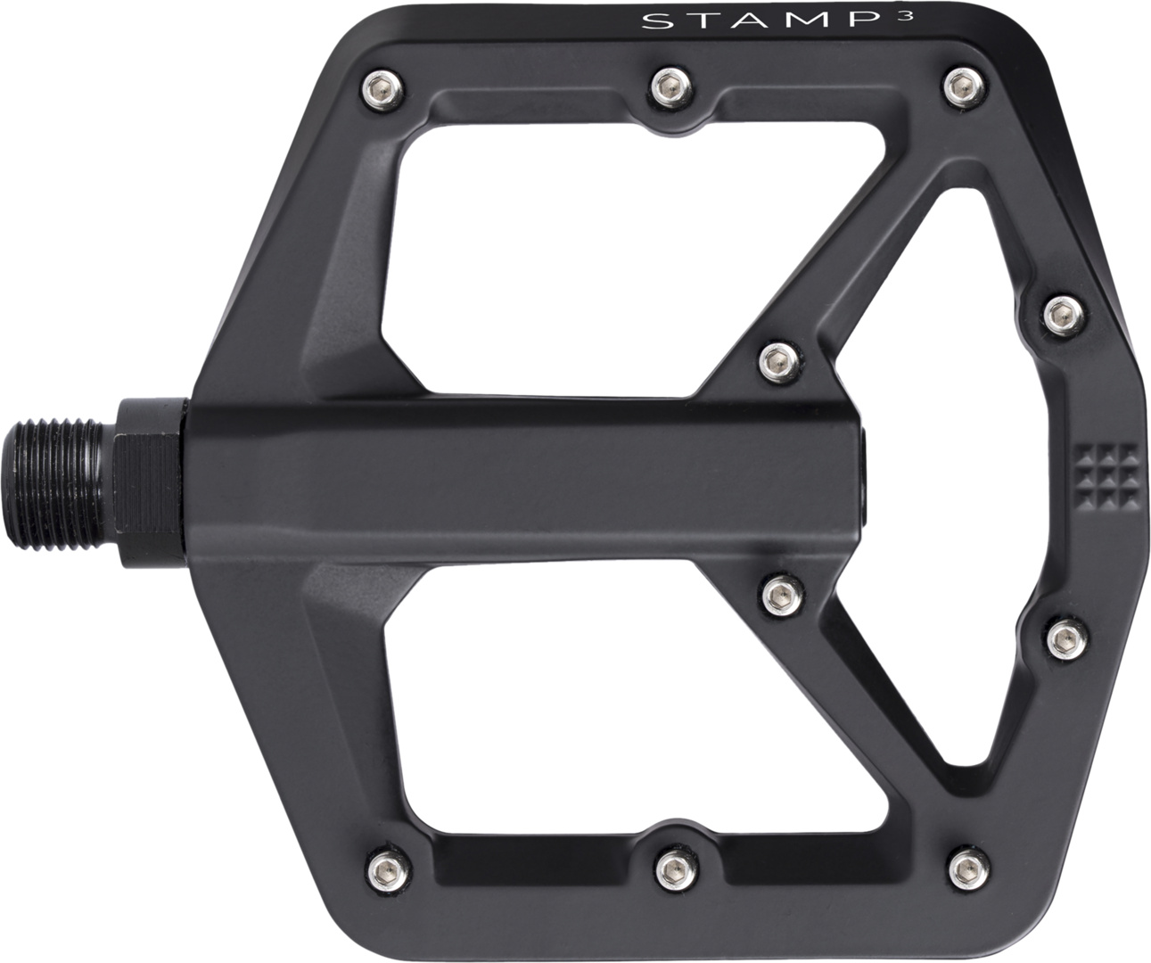 Das grössenangepasste Magnesium-Plattformpedal bietet eine optimale Schnittstelle zwischen Schuh und Pedal.