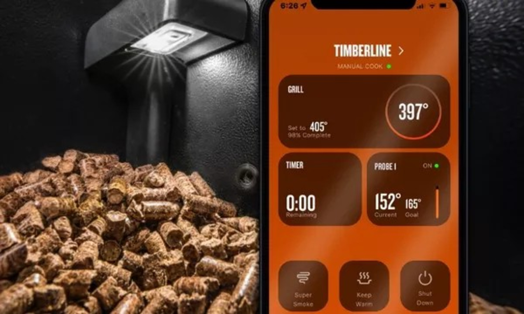 Nie wieder gehen Ihnen die Pellets aus. Unser Traeger-Pelletsensor ist in D2 WiFIRE®-fähige Grills integriert, sodass Sie die Pellet-Füllstände mithilfe der Traeger-App von überall aus überwachen können. Sie erhalten Benachrichtigungen, wenn Ihre Pellets zur Neige gehen, sodass Sie immer wissen, wann es Zeit zum Auftanken ist.