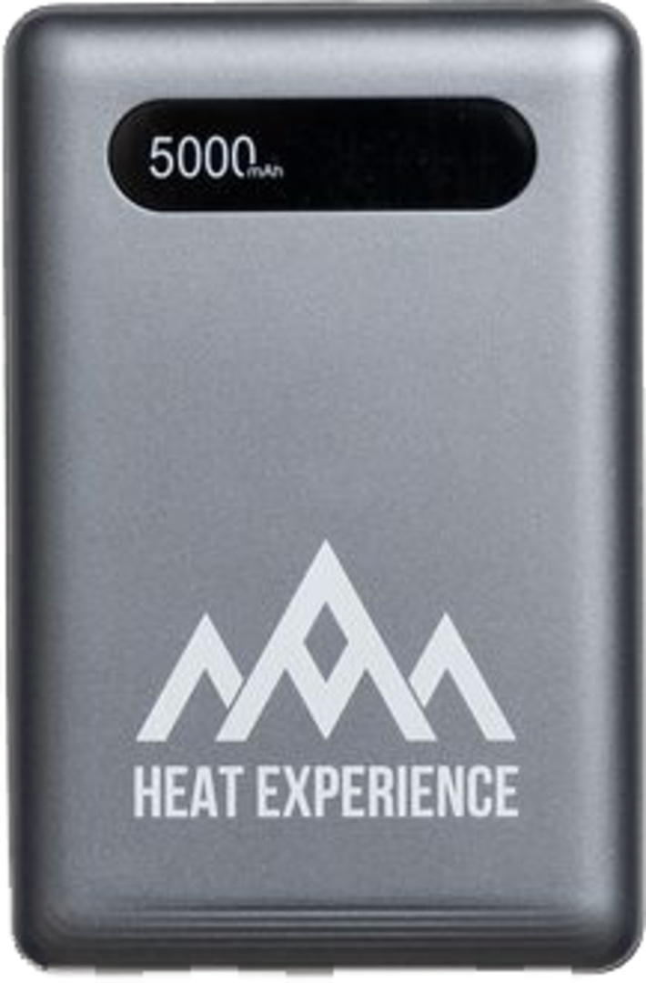 Powerbank von Heat Experience mit einer Kapazität von 5.000 mAh. Stromquelle für Heat Experience 9V- und 5V-Bekleidung und -Ausrüstung. Auch kompatibel mit den meisten USB-betriebenen Produkten, wie Mobiltelefonen und anderem Zubehör, das mit bis zu 10 W aufgeladen wird.