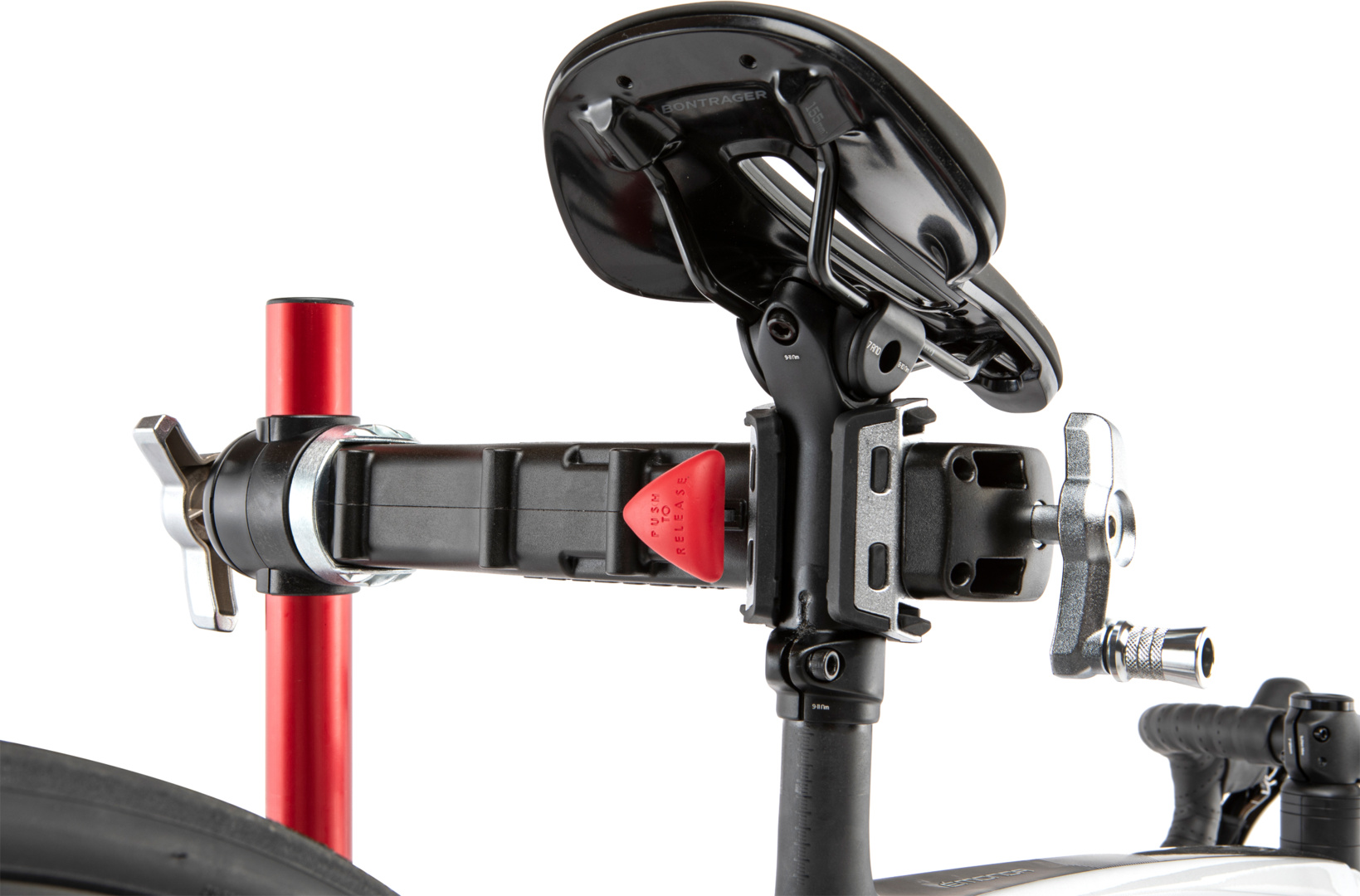 Mit eloxierten Aluminiumrohren, einer breiten und stabilen Basis, starken Backen und einem Schnell-Verschluss entspricht der Pro Mechanic den erweiterten Möglichkeiten der heutigen Fahrräder. Er kann Fahrräder bis zu 34 kg und Rohrdurchmesser bis zu 6,6 cm tragen. Dennoch ist er mit 5,7 kg leicht und tragbar, wenn er für den Transport zusammengeklappt wird (der Travel-Bag ist separat erhätlich). Er ist mit allen Funktionen ausgestattet, die Du für eine effektive und effiziente Fahrradreparatur benötigst: Einhändiges Schliessen der Backen, gepolsterter Backenschieber, übergrosser Dreiknopf und robuste, einfach zu bedienende Anschlüsse.