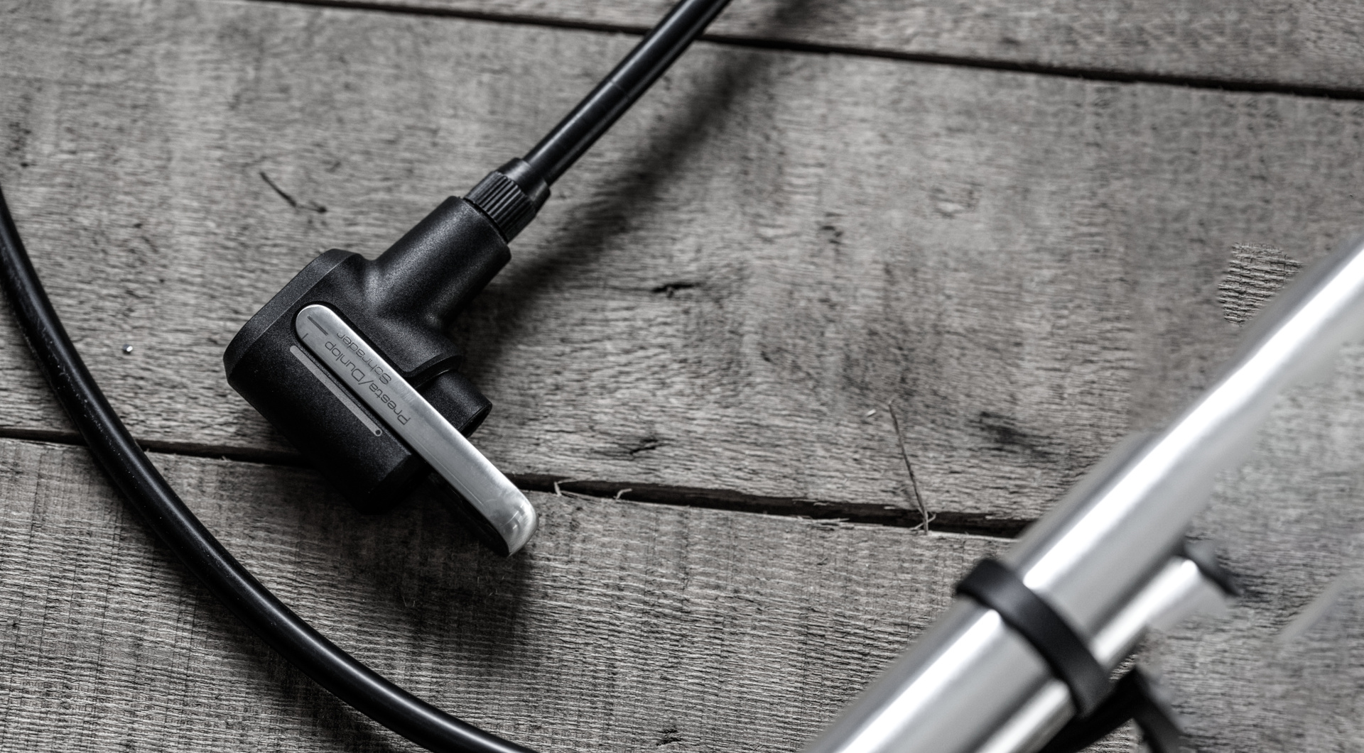 Standpumpe mit einem ergonomischen, konischen und gepolsterten Griff aus Hochpolymer/TPR und einem breiten, abgewinkelten Sockel aus Stahl/Hochpolymer mit einem 3,8″-Manometer mit guter Ablesbarkeit. Diese Pumpe verfügt über einen Kopf für Presta/Dunlop oder Schrader Ventile. Sie hat eine Pumpleistung von 160psi/11bar.