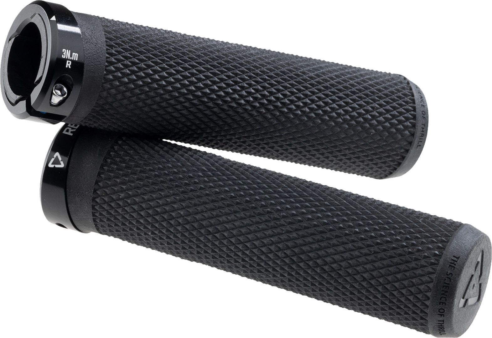 Die weiche Shore-15A-TPR-Oberfläche sorgt für ein angenehmes, direktes Griffgefühl, während die Diamant-Textur gleichmässigen Grip und präzise Kontrolle unter allen Bedingungen bietet. Die konische Form mit variablem Durchmesser platziert zusätzliche Dämpfung dort, wo die Handfläche natürlicherweise aufliegt, und reduziert so den Druck bei langen Abfahrten. Stossgeschützte Lenkerenden erhöhen die Haltbarkeit, und zwei Durchmesseroptionen (Thin und Regular) ermöglichen die perfekte Anpassung an Handgrösse und gewünschtes Dämpfungsniveau.