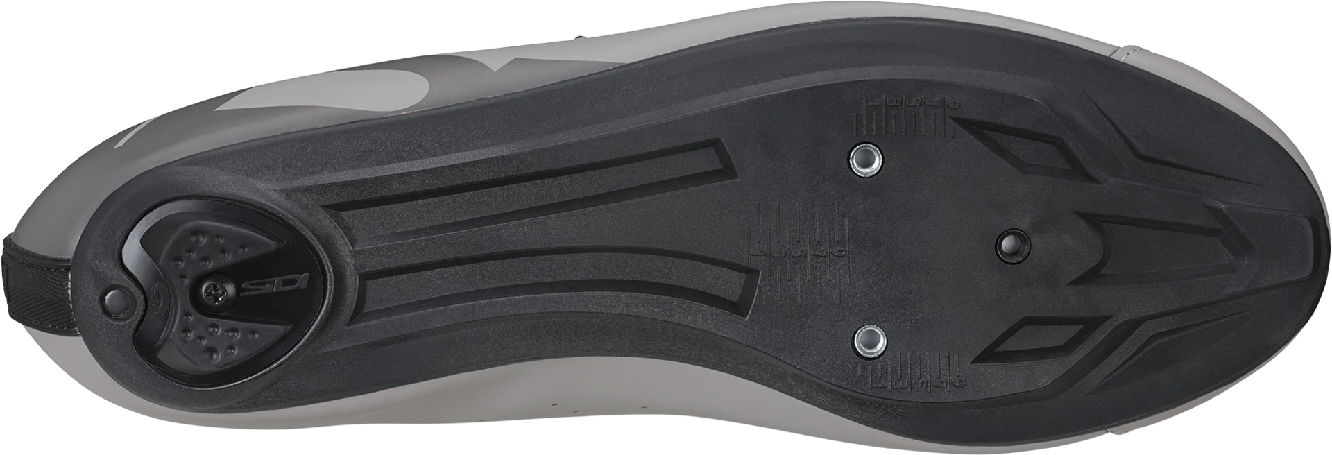 Die Sohle maximiert den Komfort auf dem Rad ? aerodynamisch, leicht und mit ausgewogenem Verhältnis von Steifigkeit und Flexibilität (Steifigkeitsindex 5), dank Nylon- und Carbonfasern.
