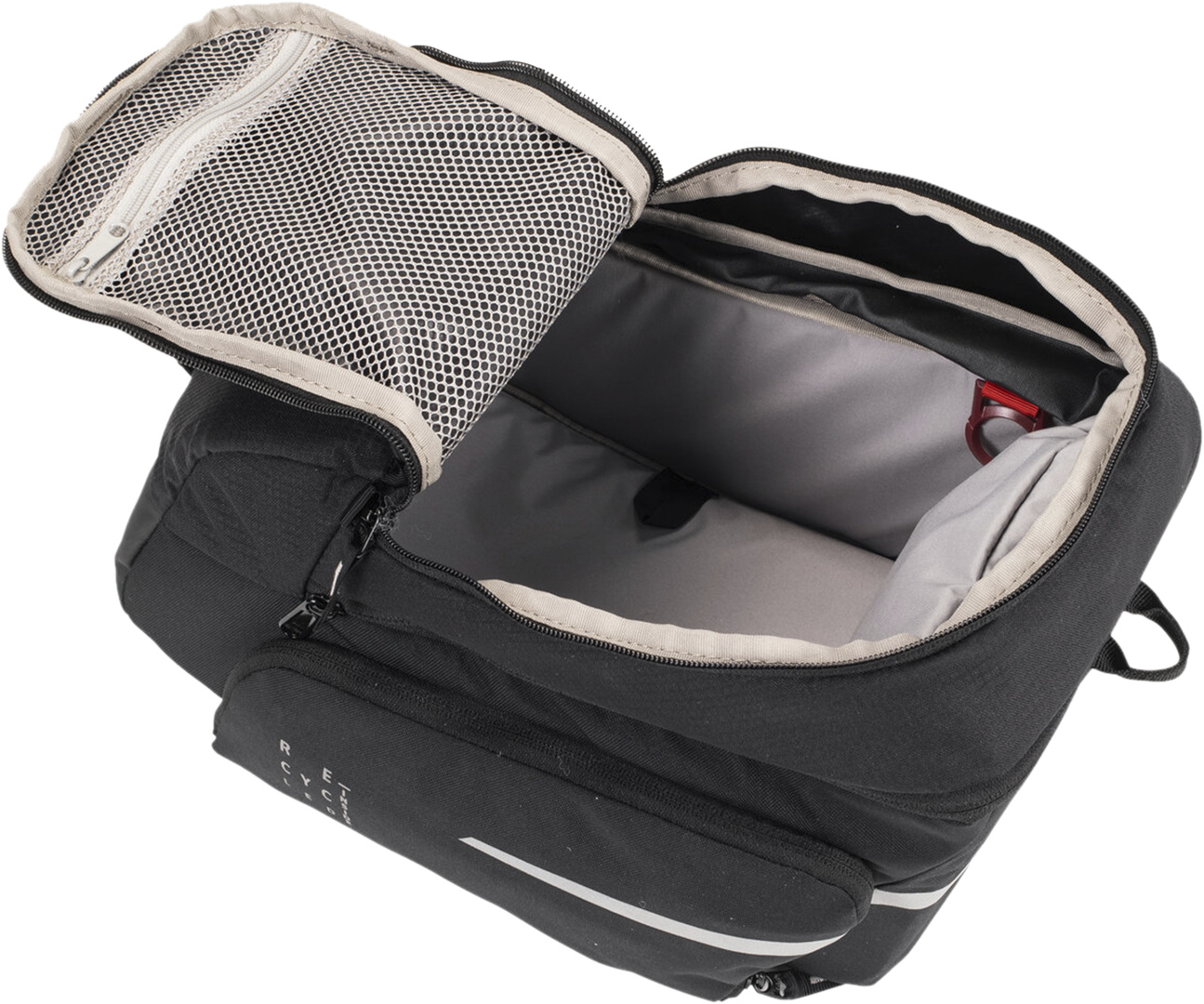 Passend für Adapterplatten von UniKlip, MIK, Racktime, i-Rack/Carrymore. Die Adapterplatten sind separat zu kaufen., Einfache Montage mit den mitgelieferten Riemen, inneres Reissverschluss-Fach, Reissverschluss -Fach im Deckel, Erweiterungsbalg, Gepäckspinne , 2 seitliche Fächer, abnehmbarer Schultergurt, Blinklichthalter, Volumenerweiterung, reflektierende Elemente, Regenhülle im Boden