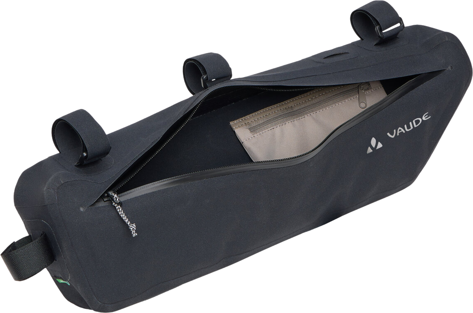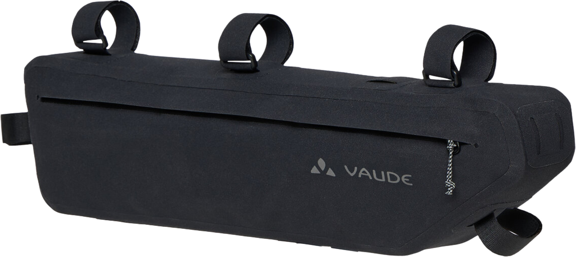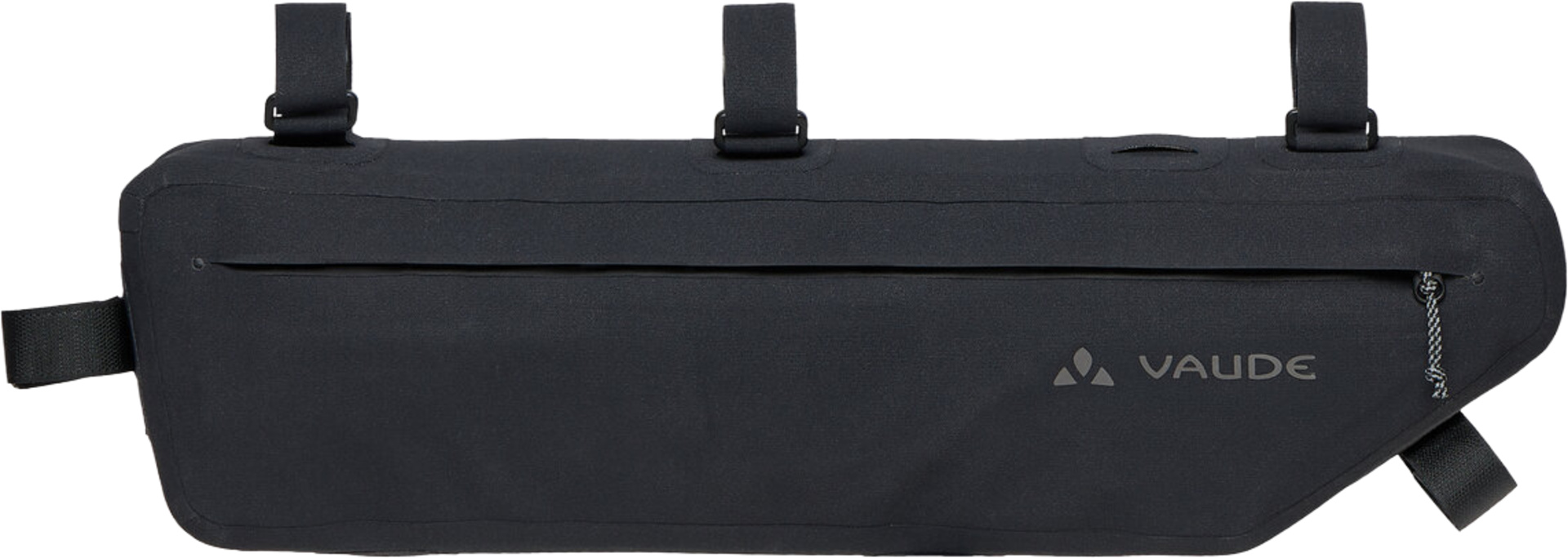 Die mit fünfzig Zentimetern Länge und fünf Litern Volumen sehr grosszügig bemessene Trailframe Rahmen Fahrradtasche schluckt gerne schwereres und längeres Gepäck ? wie zum Beispiel Zeltgestänge oder Lebensmittel ? ohne auf das Fahrverhalten des Fahrrades Einfluss zu nehmen. Die wasserdicht verschweisste Tasche wird über stabile Klettbänder jeweils an Steuer-, Ober- und Sattelrohr befestigt. Das schlanke Design bietet ausreichend Kniefreiheit, wobei eine innenliegende Klettbefestigung hilft, den Inhalt ruckelsicher zu verzurren und zu verhindern, dass die Tasche ausbeult. Der mit Reissverschluss gesicherte Organizer im Hauptfach trennt Kleinteile vom grösseren Gepäck. Der sehr lange, wasserdichte Hauptreissverschluss macht leichtes Be- und Entpacken möglich. Zur optimalen Ausnutzung des gesamten Rahmendreieckes kann die Trailframe L Rahmen Fahrradtasche (Kantenlänge vierzehn Zentimeter) mit der Trailframe M (Kantenlänge zwanzig Zentimeter) kombiniert werden. Im Bodenbereich der Tasche finden sich zwei Schlitze, durch welche die Oberrohrbefestigungen der Tralframe M geschlauft werden können. Diese Bikepacking Kombination füllt mit ihren dann insgesamt acht Litern Volumen die gesamte Fläche zwischen den Rahmenrohren aus. Bitte die Masse beachten.