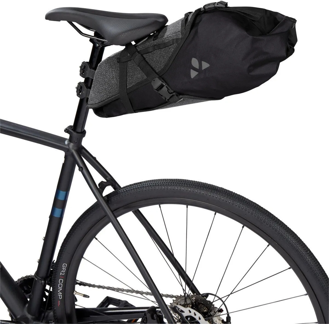 Wasserdichte Satteltasche fürs Bikepacking . Wasserdicht, verschweisst, einfache Montage, herausnehmbarer Packsack mit 10 l Volumen, klimaneutral kompensiert; umweltfreundlich hergestellt.