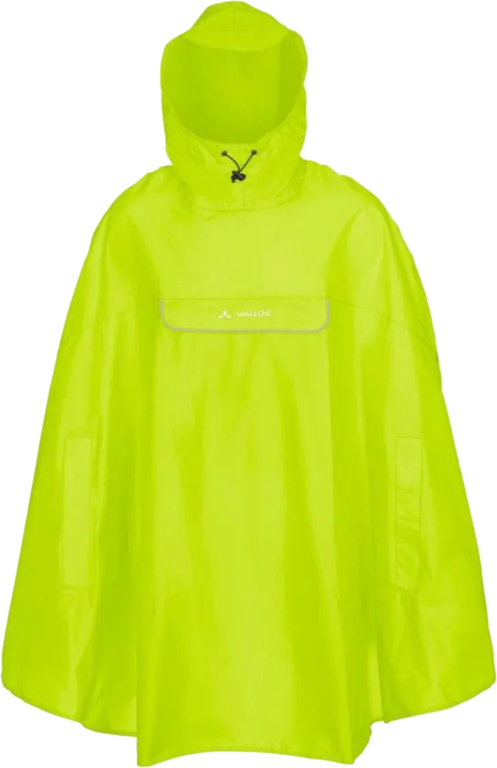 Komm unter die Haube. Der leichte Rad-Regenponcho aus umweltfreundlichem, bluesign®-zertifiziertem Hauptmaterial ist schnell übergezogen und schützt Dich rundum vor Nässe. Er lässt sich komplett in der integrierten Tasche verstauen. So klein verpackt kannst Du ihn für alle Fälle immer dabeihaben. Dieses Produkt ist mit Eco Finish umweltfreundlich wasserabweisend ohne Fluorcarbone (PFC) hergestellt. Das VAUDE Green Shape-Label steht für ein umweltfreundliches, funktionelles Produkt aus nachhaltigen Materialien.