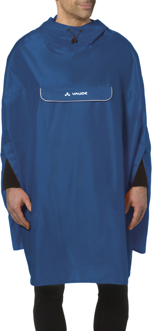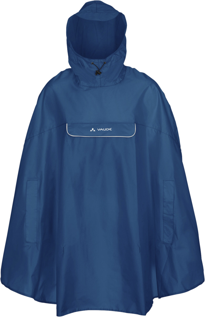 Komm unter die Haube. Der leichte Rad-Regenponcho aus umweltfreundlichem, bluesign®-zertifiziertem Hauptmaterial ist schnell übergezogen und schützt Dich rundum vor Nässe. Er lässt sich komplett in der integrierten Tasche verstauen. So klein verpackt kannst Du ihn für alle Fälle immer dabeihaben. Dieses Produkt ist mit Eco Finish umweltfreundlich wasserabweisend ohne Fluorcarbone (PFC) hergestellt. Das VAUDE Green Shape-Label steht für ein umweltfreundliches, funktionelles Produkt aus nachhaltigen Materialien.