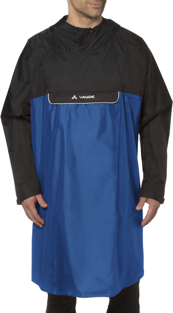 Gut für Überraschungen. Wenn Dich der Regen auf dem Rad überrascht, ist dieser Regenponcho mit langen Ã?rmeln ruckzuck übergezogen. Er wird aus umweltfreundlichem, bluesign®-zertifiziertem Hauptmaterial hergestellt und schützt Dich rundum vor Nässe. Praktisch: Der Poncho lässt sich komplett in der Fronttasche verstauen. Dieses Produkt ist mit Eco Finish umweltfreundlich wasserabweisend ohne Fluorcarbone (PFC) hergestellt. Das VAUDE Green Shape-Label steht für ein umweltfreundliches, funktionelles Produkt aus nachhaltigen Materialien.