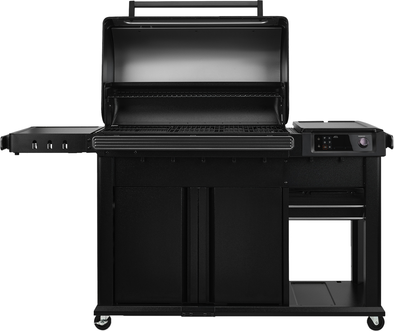 Bringe dein Grillen auf das nächste Level: mehr Platz und mehr Geschmack dank zusätzlichem Stauraum im Schrank und mehr Vorbereitungsfläche sowie Super Smoke?-Modus und WiFIRE®-Konnektivität.